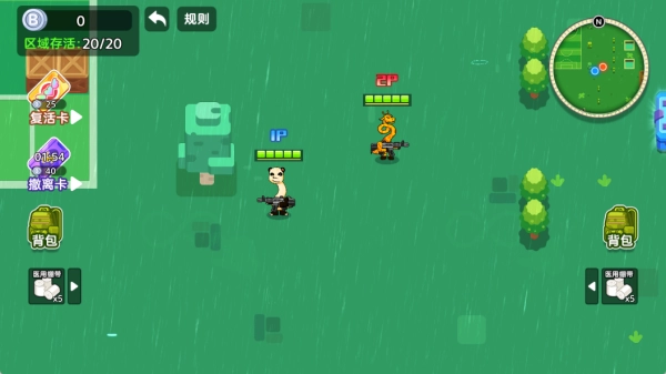 1、每局游戏都会匹配实力各异的对手,玩家进入战场后,首要任务是收集武器,通过快速增强自身实力来对抗其他对手。