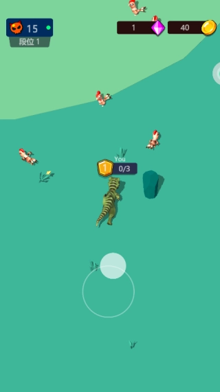 1、左手控制方向杆使恐龙灵活移动,右手点击吞噬键的同时,要留意背后可能出现的突袭。
