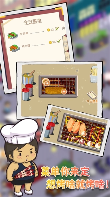 在游戏中你还可以钻研独家酱料配方,升级店面雇佣店员,发展到一定规模后还能加盟连锁,努力把你的烧烤摊开遍全国吧!
