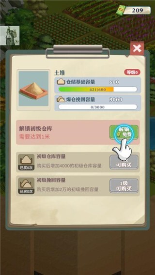 4、开启你的初级仓库,它能容纳更多的沙土。