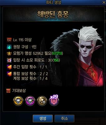 1. 进入噩梦释放地下城所需的名望为【52952】,入场要消耗30点疲劳。
