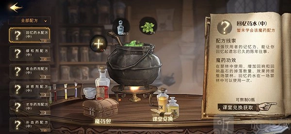 在魔药界面中寻找到回忆药剂,点击熬制选项,即可进行制作。