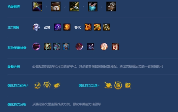 游戏开局可选择大剑或者腰带。在前期,如果能凑出双黯灵以及基克,就直接走连胜的路线;要是没有的话,也可以考虑通过星界或者碧波龙开局,采用连败的策略来积攒经济,以便抢夺基克的散件。