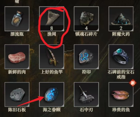 网到最后会出现海之眷顾,届时去兑换就行。你看我包里还有8个渔网,也不清楚后续地图会不会用到。