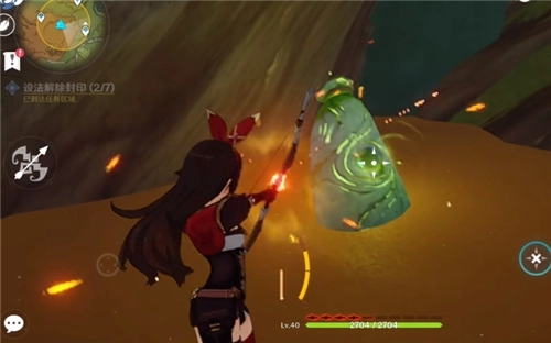 解除方法是操控安柏,朝着绿光石头进行蓄力攻击。