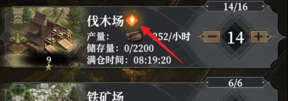 庄园里的资源点能够升级,一开始我没留意到这点,后来才发觉,只要资源点有下图所示的图标,就表明它可以升级,而通过升级能够增加存储量。