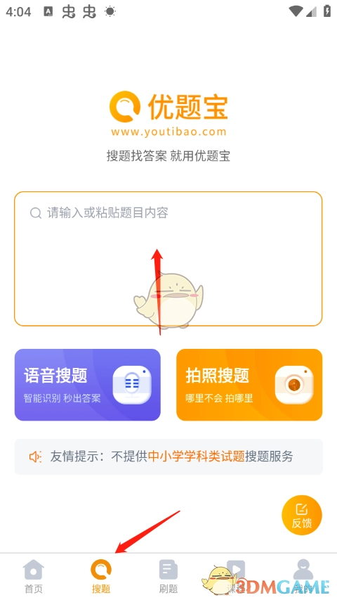 1. 开启优题宝,进入搜题页面。在该页面,既能够点击输入框手动输入题目,也可选择语音搜题或拍照搜题。