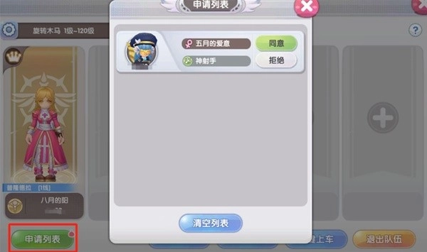 申请列表——申请加入小队的玩家可以在这里通过申请。
