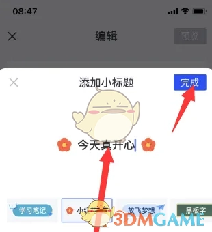4、最后点击你喜欢的小标题,在相应位置输入文字,然后点击右下角的“完成”按钮。