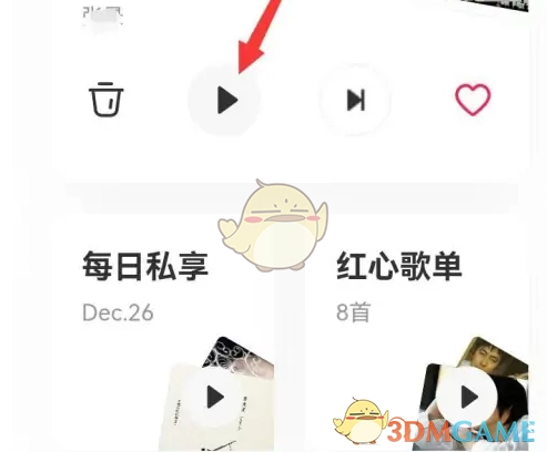3、在豆瓣FM页面找到显示的三角按钮并点击,就能收听喜爱的音乐啦。