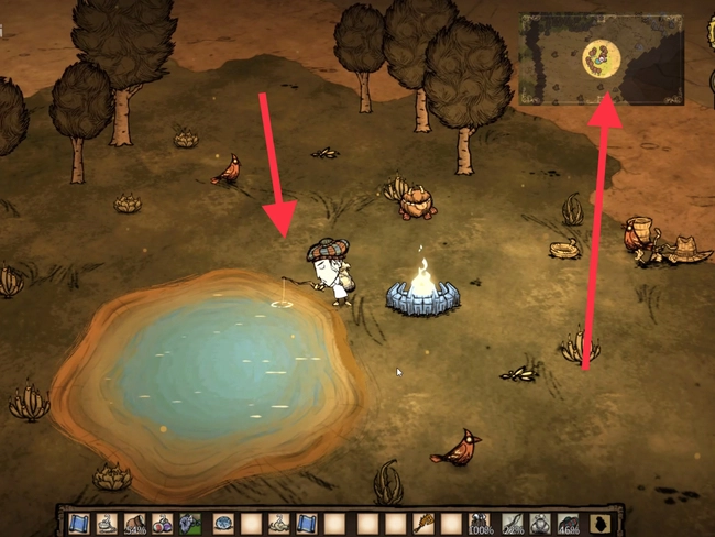 1. 玩家需等到游戏时间进入夏天,前往沙漠绿洲,在图中所示位置能看到一处池塘。