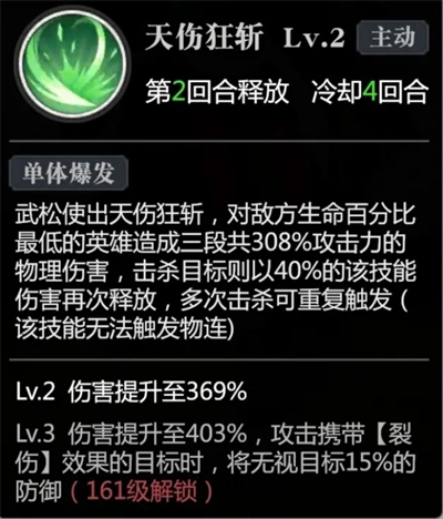 注意啦,弓箭的技能要在第二回合释放,如此一来,放完弓箭技能后敌方全是残血状态,这时武松直接进行收割就可以了。