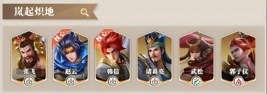 ◆英雄选择:张飞+赵云+韩信+诸葛亮+武松+郭子仪
