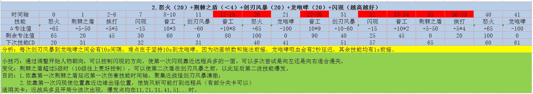 2. 怒火(20 点) + 荆棘之盾(小于 4 点) + 剑刃风暴(20 点) + 龙咆哮(20 点) + 闪现(等级越高越好)