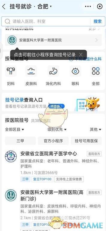 3、接着选取“医院”来开展登记。