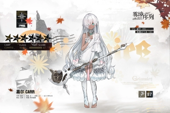 特派调查员嘉尔,身为柯米提斯星颂院的奉星使。这位调查员长期接受施展奇迹方面的训练,如今被分派到医务室开展辅助工作。 “雾语者测试”得分:87