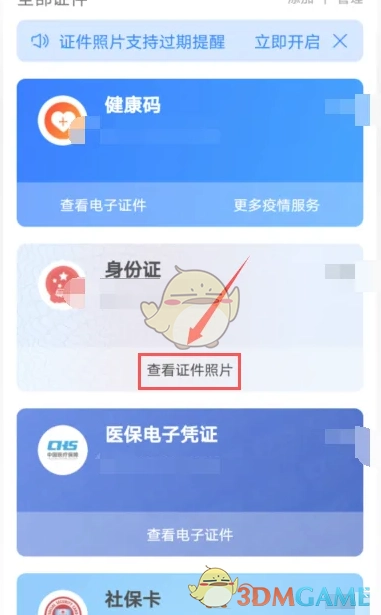 3、最后找出自己的身份证件,点击下方的【查看证件照片】,进入查看就可以了。