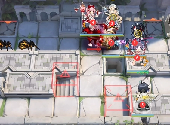 在如图所指示的位置,向左部署煌,同时部署塞雷娅。