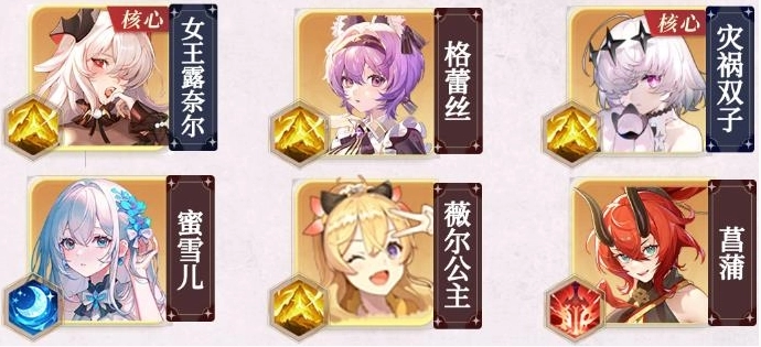 露奈尔女王、格蕾丝、灾祸双子、蜜雪儿、薇尔公主、菖蒲