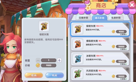 1. 想要购买箭矢的话,只需切换至杂货铺的“战斗补给”页面就能实现。