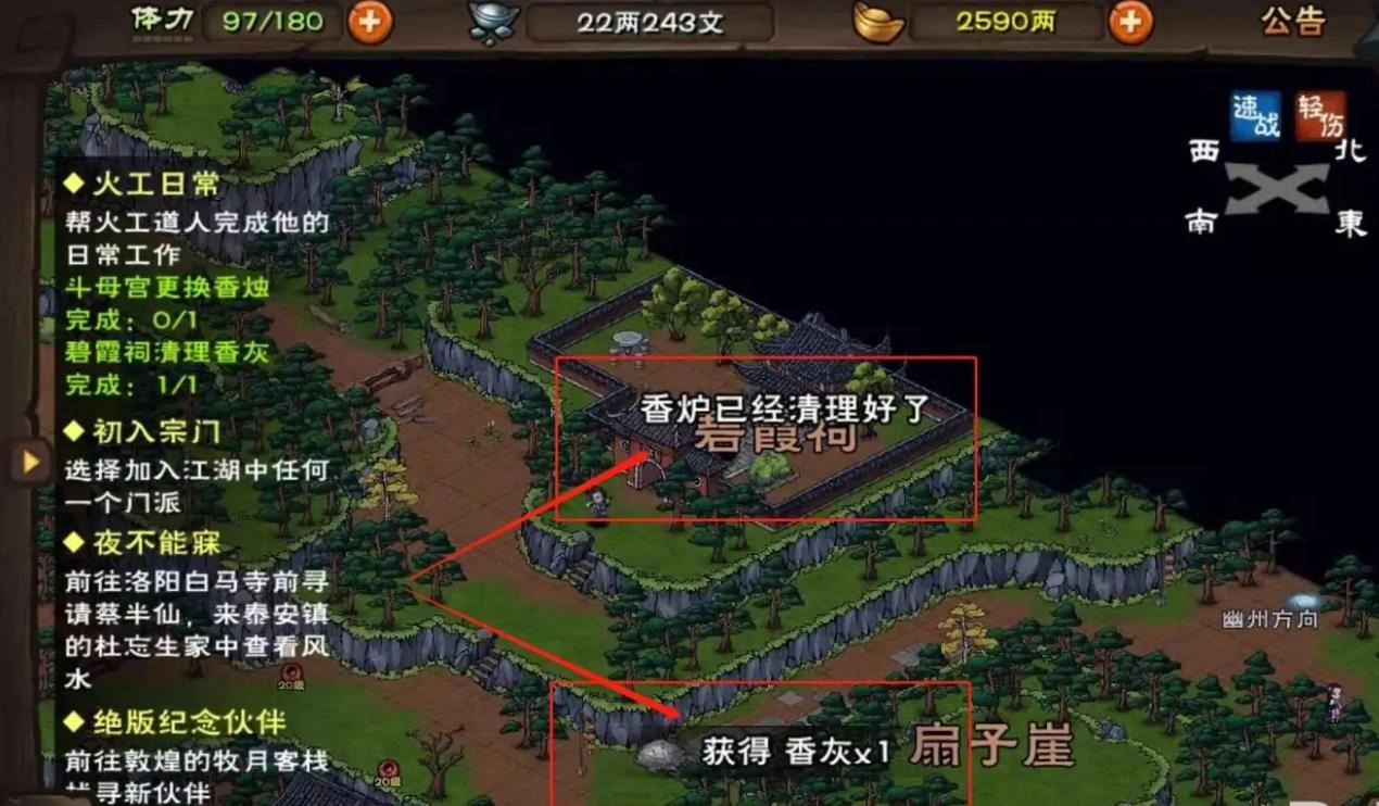 2. 抵达任务目的地后,于弹出的对话框里,挑选清理香灰这一选项。