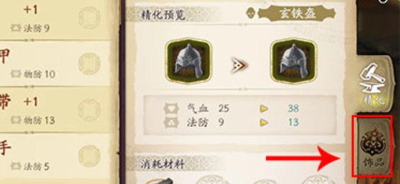 4、此时,在右侧能够看到两个选项,点击下方的饰品,穿戴此饰品即可增加属性。