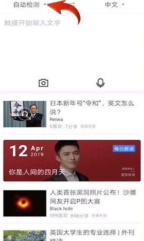 1. 第一步,打开【百度翻译】APP,接着点击左上角的【自动检测】。