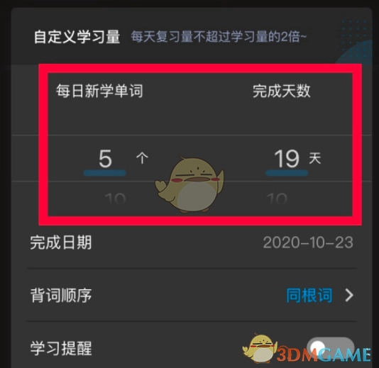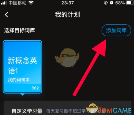 5、完成词库选择后,系统会自动跳转回“我的计划”页面,接着在该页面针对所选词库设定每日新学单词的数量。