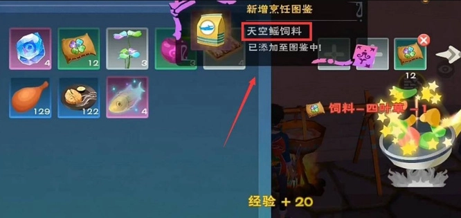 5. 稍等片刻,就能获取天空鳐饲料了。