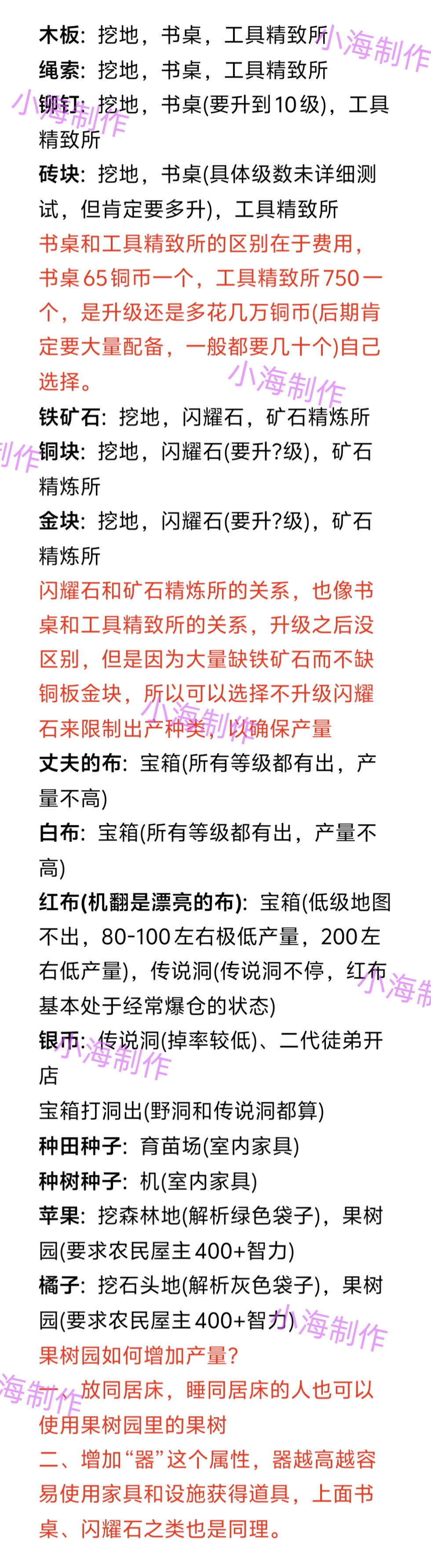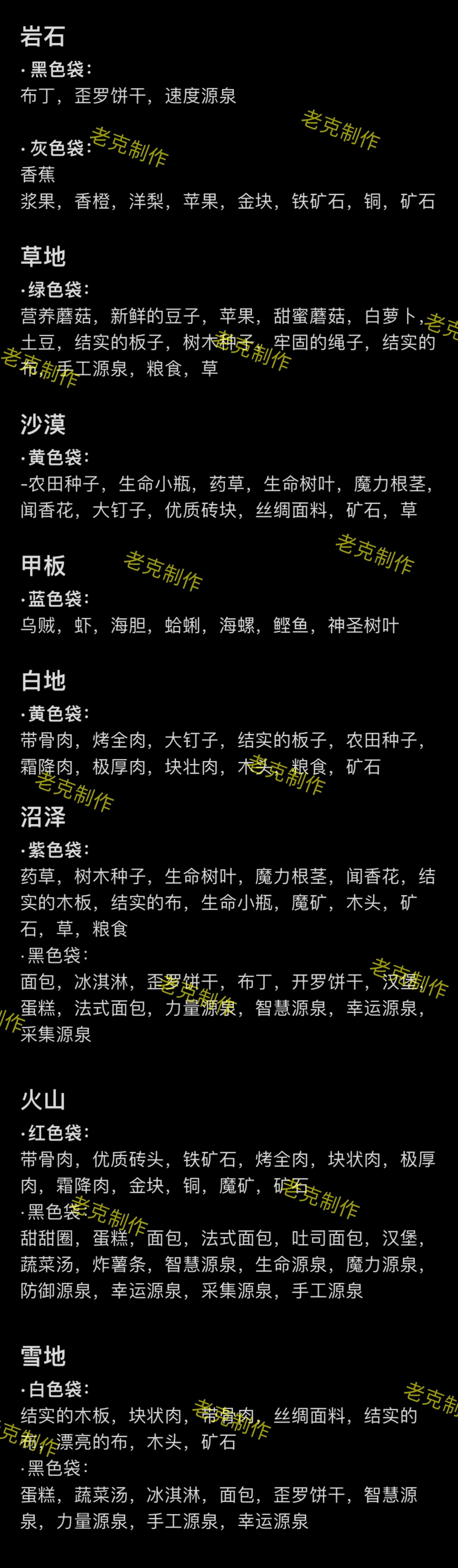 3️⃣上述5种基础资源,均可通过挖地获取袋子,经解析后产出,具体情况如下图所示。