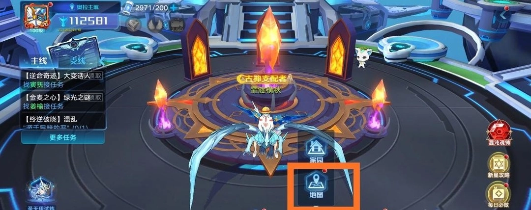 1. 玩家首先进入奥拉星手游,点击屏幕下方的地图按钮。