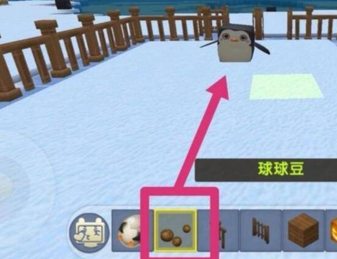 3、首先站到围栏之中,利用豆豆球把企鹅吸引至围栏里面。