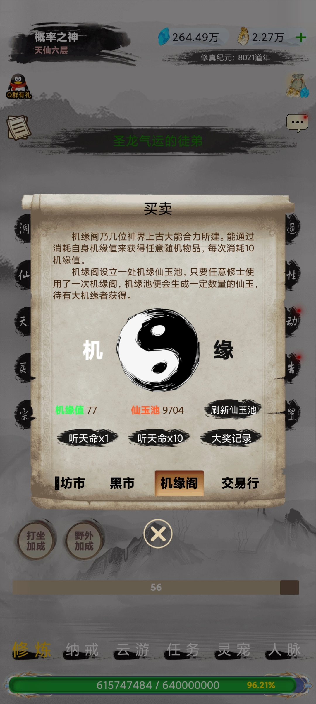 黑市中有能打折的雾炮,打折药可根据自身情况考虑购买,不过不太建议零氪金的其他玩家入手。至于机缘抽奖,没什么多说的,全看运气!要是抽到好东西,系统会发布公告,也就是所谓的“上电视”。