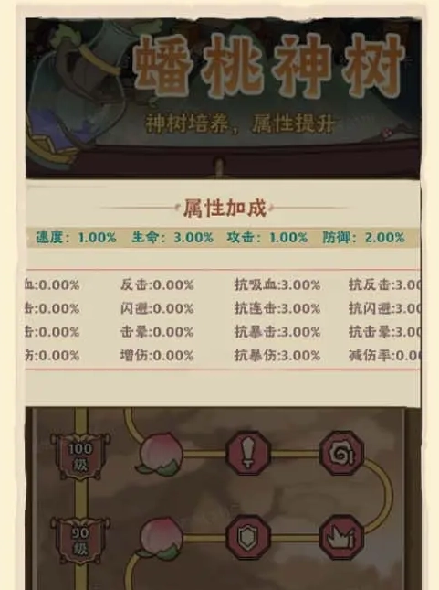 升级神树能够提升一定的道行,每提升3级,神树所提供的属性加成会增强,道行也会随之提升。
