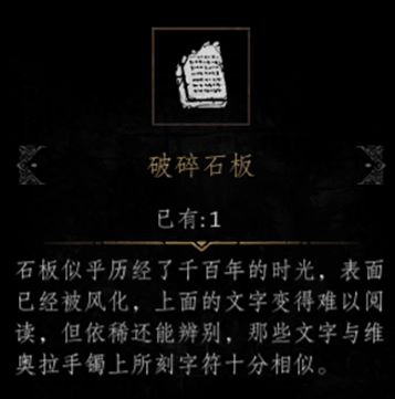 注意:在大树的塔楼下方,通过水路,能够获取女枪维奥拉的首个[契约]道具【破碎石板】。