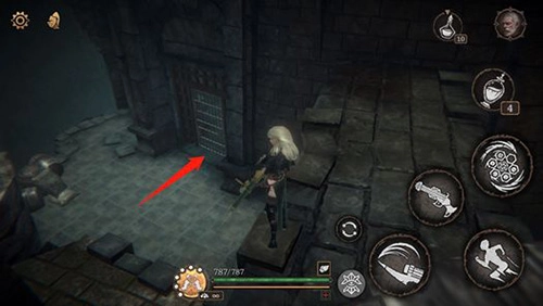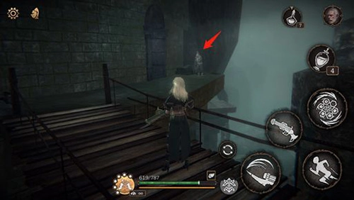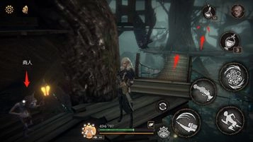 右侧过门后左拐,下落可到黑精商人处,继续探索主线剧情。