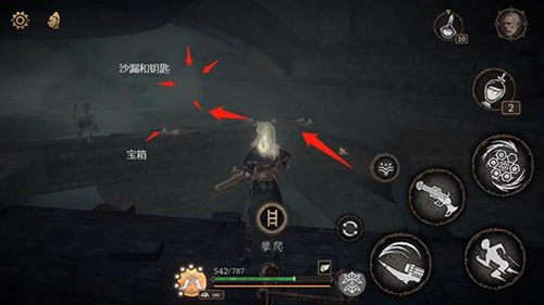 1)左侧下去开捷径(通向门口祭坛处);女枪维奥拉[契约]道具【破碎石板】;支线捡沙漏;