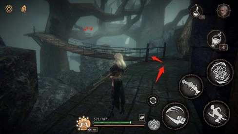 经过圆盘平台上,击杀斧头怪后,前往吊桥尽头的小屋探索,