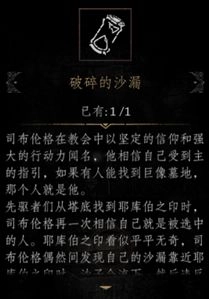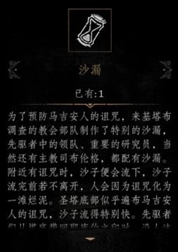 请注意:若未拾取沙漏,径直前往击杀BOSS,BOSS会掉落【破碎的沙漏】,此道具可与【风化的骸骨】合成【永恒】。但因NPC所化的BOSS被击杀,将导致无法完成[轶闻]支线任务【游荡的先驱者】 。