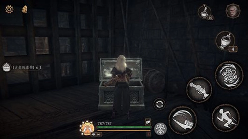 十三、注意:从顶层的祭坛出发,依旧沿着外边向下走,使用【基塔布房间钥匙】打开铁门。在此处的宝箱中可以获得独臂猛男诺伍德[契约]道具【古老的遗物】。