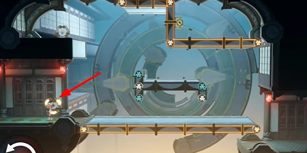4、继续往右边走,将机关往右边转动两次。