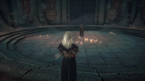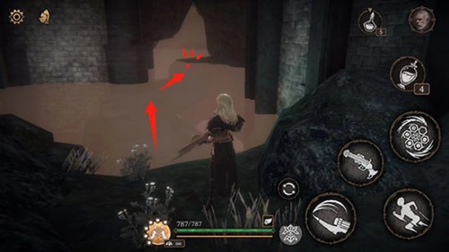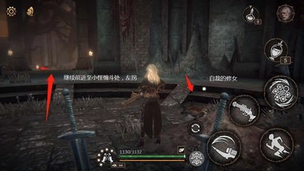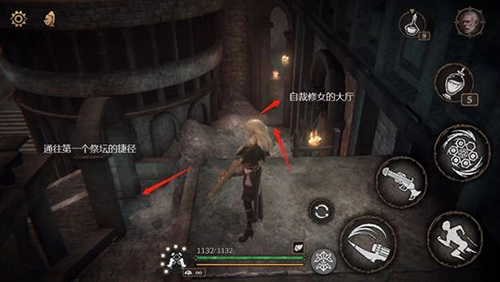 三、依旧朝着神柱门口的方向前行,在图二的左侧能够开启一条捷径。若一直往前走,走到尽头后向右转弯,便会遇见一位企图用圣剑自我了断的修女。此时,会触发[轶闻]支线任务【死亡,或者成为污秽】。