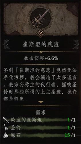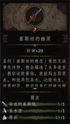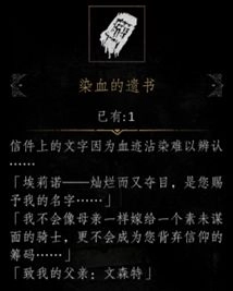 要是选择启用【崔斯特的慈悲】,就会察觉到感染了污秽的修女并未被击杀,而是转化成了小怪,将其击杀后依旧会掉落【染血的遗书】。同时,背包里会出现【染血的崔斯坦】。
