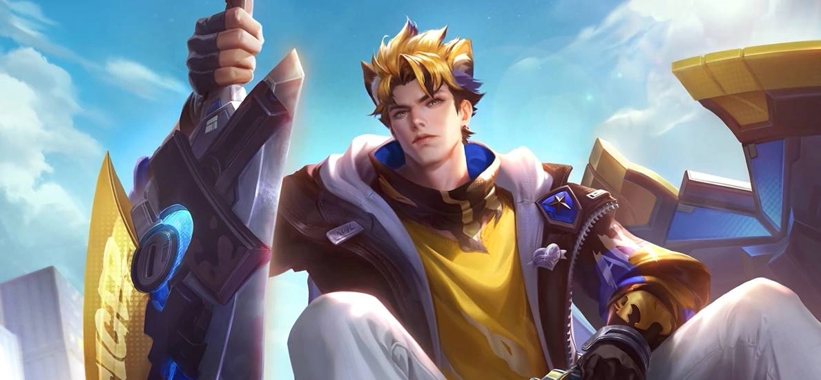2、为亚瑟精心打造了帅气形象,把潮流感与街头感巧妙融合,以黄色 + 蓝色作为主色调。