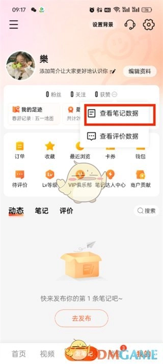 3、随后便能看到“查看笔记数据”与“查看评价数据”这两个选项,点击【查看笔记数据】。
