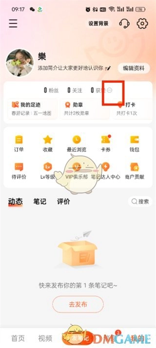 2、接着在我的页面,就能看到粉丝、关注、获赞等相关信息,此时需点击获赞旁的【三点图标】。