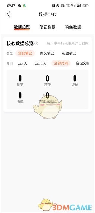 4、最后,当我们来到数据中心页面,就能查看到笔记数据了。