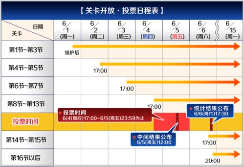 接下来,本次活动的关键在于抉择故事的发展走向,方式是通过投票来决定,遵循多数人的选择确定主线故事走向。对于那些想要认真研读故事的master而言,投票时间至关重要。下面就为大家呈上详细的投票时间攻略,一起来瞧瞧吧!