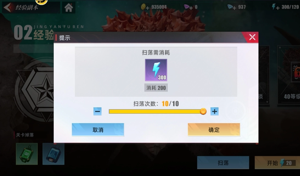 不过,参与这个副本是要消耗体力值的,每次参与需耗费20点体力。要是大家体力充沛,能多参与几回,毕竟挑战次数并无限制。要是选择扫荡,大家可自行挑选扫荡次数,最多能进行一次十连扫荡,每次扫荡同样消耗20点体力,这样十次扫荡总计就需要200点体力值。通过直接扫荡,大家就能消耗体力来获取奖励。但要注意,每次解锁新关卡,都得先进入战斗,只有完成首次战斗后,才能开启该关卡的扫荡功能。