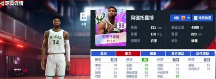 在后卫线球员的挑选上,我们倾向于那些具备拉开空间能力且三分属性较好的球员。字母哥自身具备极为出色的篮板与防守属性,鉴于此,在内线球员的选择方面,我们可以挑选拥有一定投射能力的内线球员。而对于锋线球员的选择,我们会更加侧重于其防守属性,力求实现内外线以及攻守两端的平衡。